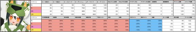 レア度毎のステータス変動は特殊で攻撃力が上がりやすい代わりにLPとブースト総量が上がりにくい?みたいジュビ(調査中)😎