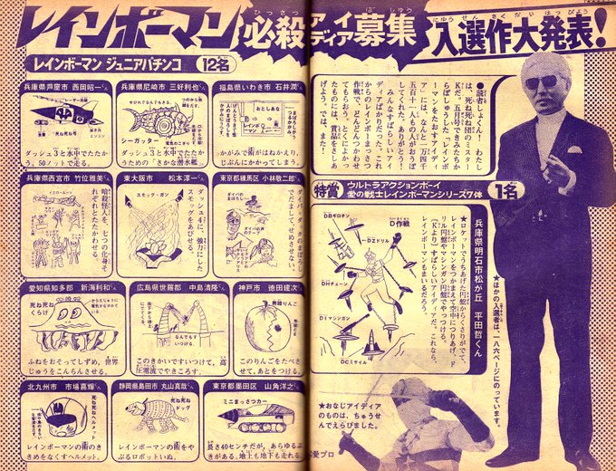 テレビマガジン1973年7月号より。レインボーマンを倒すアイディアを読者に募集する死ね死ね団と応募する14,511名もの読者とその作戦レベルw