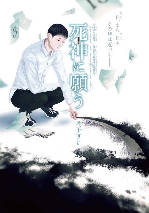 第102回手塚賞準入賞作品、地下すい「死神に願う」読了。プロットは単純ながら、優しく透き通った物腰柔らかなどこか大人びた作風は不思議な魅力に満ちていて。少しコミカルなのも良い。森泉岳土先生のテンションに近いのかもしれない。