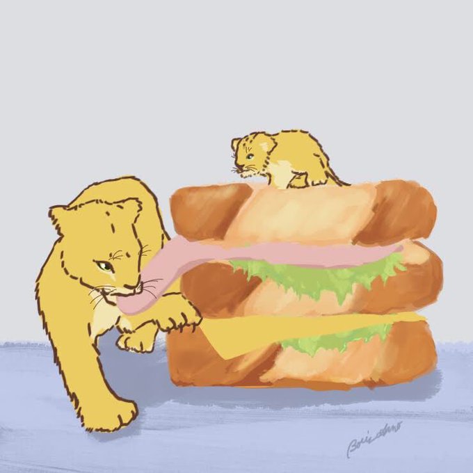 #今日は何の日 #フランスパンの日 #サンドイッチ #ミニチュア仔ライオン