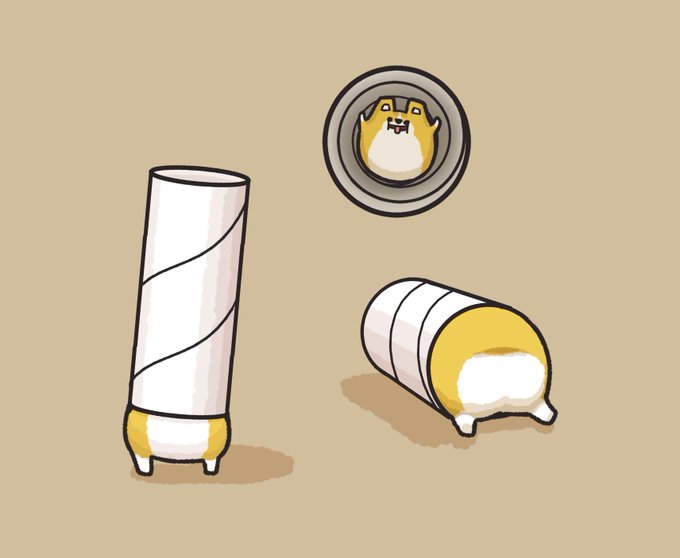 トイレットペーパーの芯にはまったコーギー
