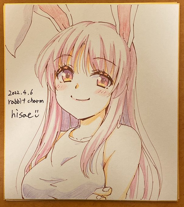 気温上がってきたので水分補給わすれずに!な感じのうどんげ 4月12日 #毎日色紙イラスト