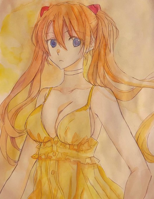元絵をペン入れ>領域指定下塗り>着彩のブラシ塗りと水彩塗り。修正なしだとこういう感じです。