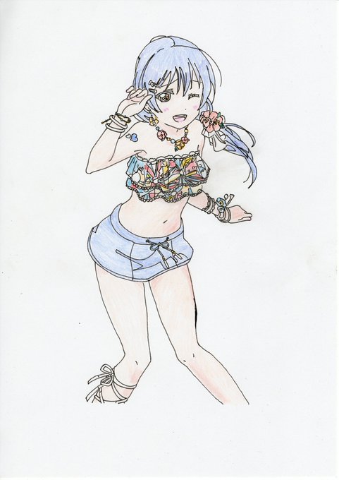 https://t.co/4eUPZhlekt 模写No.473.5 7/18日2枚目模写 水着海未ちゃん、描いてみた♪ 線画なし(色塗り) #海の日 #海未の日 #ほのかわ団