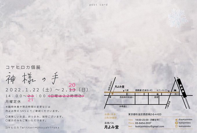 ◆〜20(日)個展「神様の手」@西荻窪 月よみ堂 @tsukiyomidou