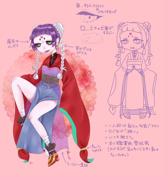 正式なプロフが完成したのでアップし直します~!仲良くしてください!名前は、日本語読みが”メイ”、中国語読みが”ミング”です。今思ったけど、纏足は無窮になってからではなく、人間の時になったものかもしれない…。 #永永無窮 #永永無窮CS #永窮_無窮 #永窮_天嶺