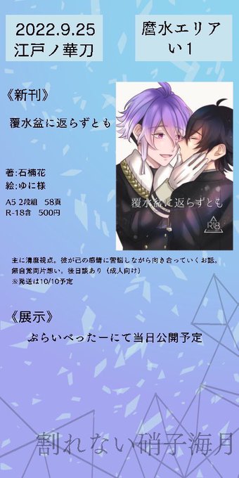 こちらお品書きと新刊情報なります〜!!!!!展示は12時ごろを予定しておりますのでお買い物等終わったらぶらりとお立ち寄りくださると嬉しいです(*´ω`*)