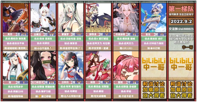 9月12日更新の決戦平安京のtier表です