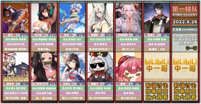 8月30日更新の決戦平安京のtier表です