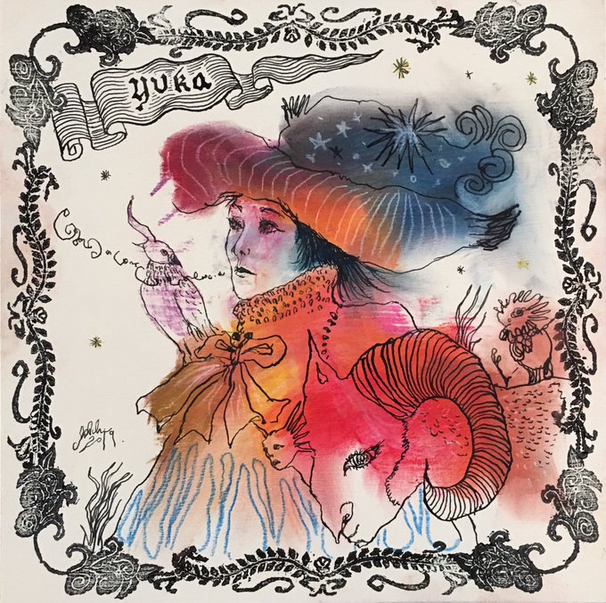 ずっとお目にかかりたかった #矢野ミチル さんの個展「#ミクロコスモスは続く」へ 念願の #サイキックミラー #似顔絵 を描いて頂きました 絵の中でも歌ってて…あぁもう嬉しすぎる…💕 本当にありがとうございました!! #シボネボルケ #ミクロコスモス #波打ちぎわの夢
