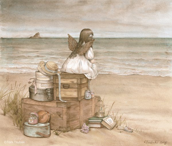 「波のむこう」 2018 アクリル絵具/紙 245×290mm 個人蔵