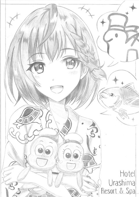 今年もしらたきさんから、とっても素敵な樹紀ちゃんのイラストをいただきました🙇🏻♀️✨毎年楽しみにしている、しらたきさんの描く樹紀ちゃん!今年はホテル浦島さんの浴衣を着た樹紀ちゃんのイラストをいただきました🥰今回もとっても可愛い…🥺💓タッキー&ウララに浦島丸とマグロまで描かれています!🐟