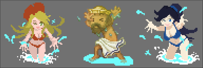 🌊海の日記念!OCEAN CUP 2019🐢 一閃の水パシャパシャ と 精緻の水パシャパシャに攻められる(恍惚の)アルキメデス(75) 海の日!って感じの作品に仕上がったとおもぴます🤣😂🤣 #マイクリ #ドット絵 #pixelart #お絵描き好きさんと繋がりたい