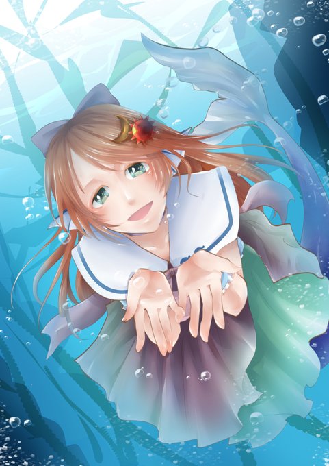 skeb納品しました。おめめがくりくりでキュートな人魚娘ちゃんです。イイ...