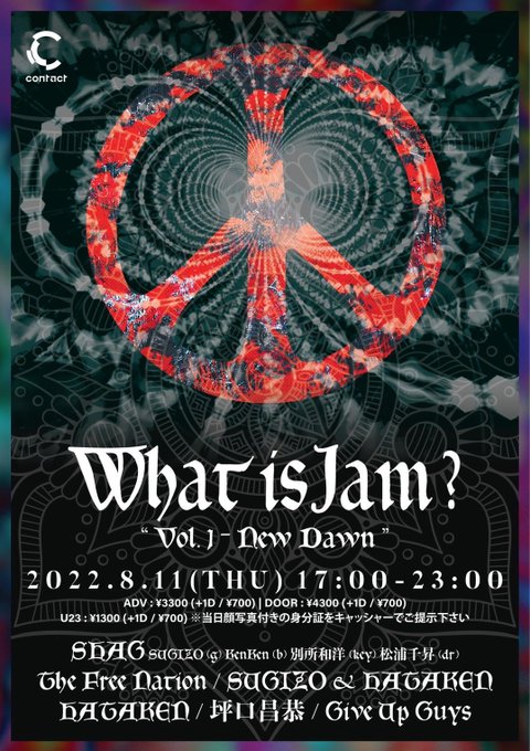 明日8/11(木) 渋谷Contactにて「WHAT IS JAM? “Vol.1 – New Dawn”」会場にて【SHAG×CAHAZ,IIIXI】コラボタイダイT-shirtが数量限定で販売です🔥