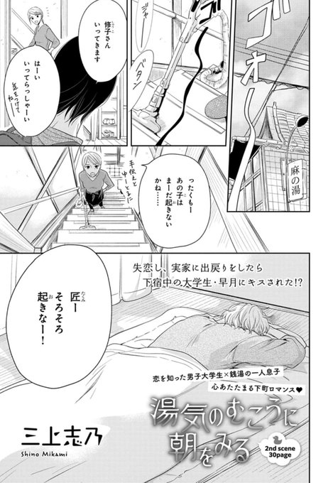 恋を知らない大学生×失恋直後の銭湯の息子!受けの元カレもひどい別れ方なんだけど、なんか土下座してるのとか見ると嫌いになりきれない。そうしなきゃいけなかった周りの環境とかもあるんだなって思ったら受け同様 好きな気持ちを