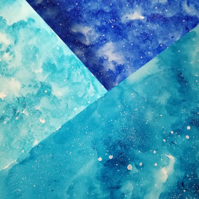 赤系3色と、青系3色で描きました!