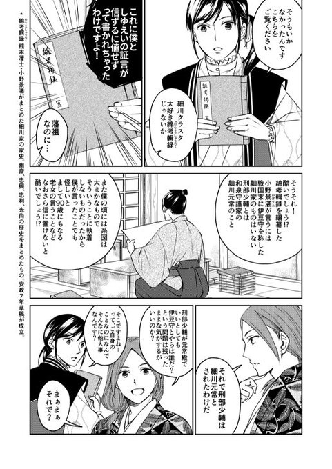#おもしろ同人誌バザール 10に明日出展予定です。新しいものはありません。すみません…。論文をマンガ化した『Hosokawa』と細川家の人物を紹介した『ほそかわけ!』を持って行きます。この細川家は熊本藩の藩主になった細川家だよ。細川幽斎と忠興がメインです。