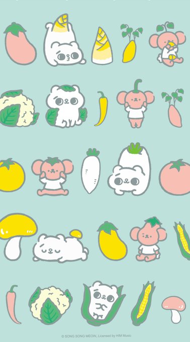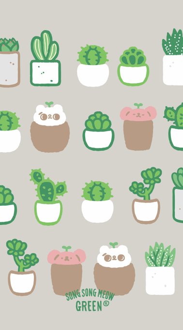 5月の壁紙がSECONDから届いたよ〜✨ おやさい柄とサボテン柄、どちらもホッと一息できるナチュラルデザインなの🐱 かわいい〜!! #爽爽猫 #そうそうねこ #ねこ #くまのあうちゃん #壁紙 #可愛い #猫好きさんと繋がりたい #キャラクター