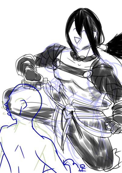 『Da-Da-Da Dynamite 唸れバスター! (sensation!) 繋げ友情 七色の台風吹き荒れろ!!』 旧作アニメOPの「キン肉マン旋風」の二番の「唸れバスター」って歌詞が好き。 それとバッファローマン戦とかでごくたまにやる「片膝立ちのキン肉バスター」も好きなので描きました。 #キン肉マン