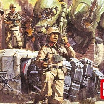 片膝立ちで拳銃と無線機を持ってる士官と分隊支援機関銃撃ってる兵士、ハードグラフのMS特技兵セットにあるゼエブ・コールドマン少尉とホエル・ラフエンテ伍長のポーズと似てるんよな…少尉たちの所属はコジマ大隊の対MS歩兵中隊だから、ここで吹き飛ばされてるのはそっくりさんか