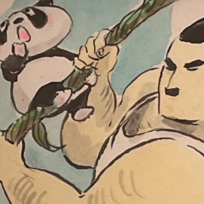 今まで子ども番組や絵本に描いた『木』をテーマに展示します。小作品から大きな木作品まで、全て今回用に描きおろした新作約50点。そこになぜか「ひげとパンダ」も遊びに来てくれました #ひげとパンダ @makotokunitoki