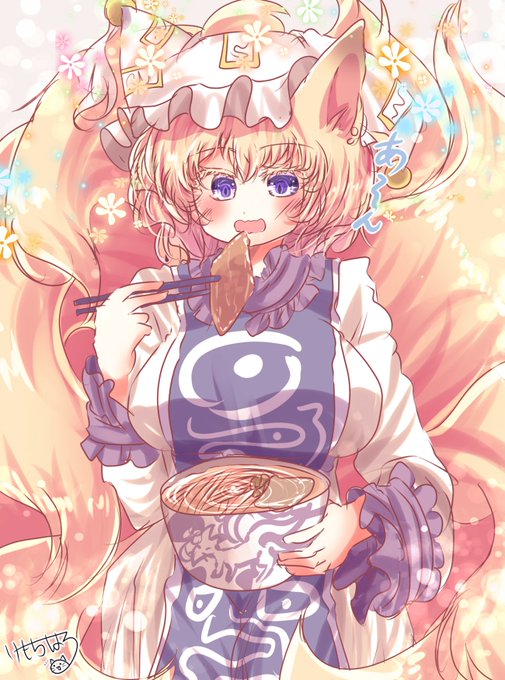 寒いですねぇ、藍様。おうどんが美味しい季節ですよねー。『あー…むっ、ん〜〜最高♡』あらら、お揚げに夢中ですね…(しかし大きい丼だなぁ…)