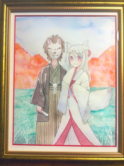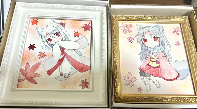 #狐たちの隠れ里 に額装3枚、フレームレス2枚で参加いたします! 狐っ子たくさん描きました🦊