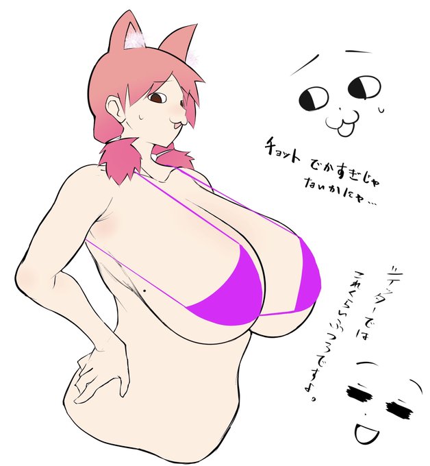 牛帝さん作「中年男子の日常」の猫菱ベルガーさんを描きました。猫菱さんの巨乳設定はホント無駄で良いと思います😃。