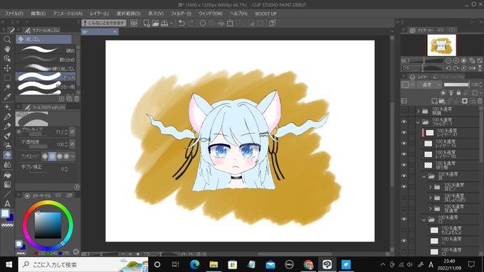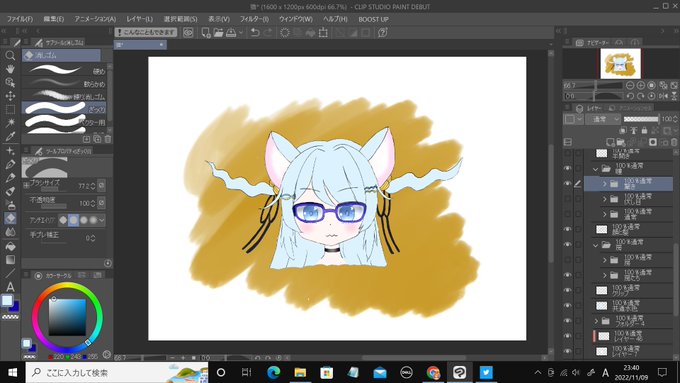 「ハイパーカスタム猫野しゆ」描けた......。どこらへんがハイパーカスタムかというと、耳とハーフツインと表情の組み合わせでいろんなしゆちゃんを楽しめる......。あと眼鏡......。ただ私だけが楽しい......。