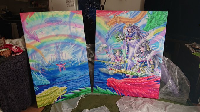 @ruritarot2020 ありがとうございます~💖現代美術家協会に所属してますので、毎年5月~6月に国立新美術館で開催される「現展」に参加します👍入選したら・・展示されます😅今年も展示されることを祈って、制作中です~💦この絵は、2018年に入選いただいた「Paradise Birds~天界の六鳥~」という作品です😊🌈