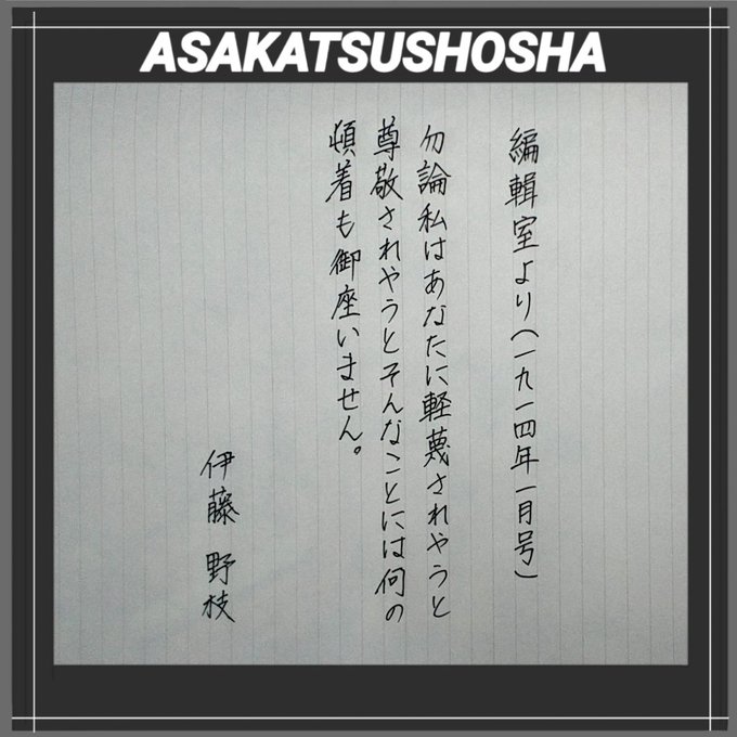 伊藤野枝:大正2年平塚らいてうらの青鞜社に入り、のち「青鞜」誌を主宰した。5年大杉栄と同棲し無政府主義運動をすすめるが、関東大震災直後の大正12年9月16日憲兵甘粕正彦らに虐殺された。