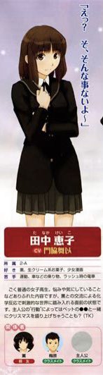 モブキャラでは一番好きだけど、あるヒロインの攻略中に田中さんルートへ行こうとすると「GAME OVER」になってしまう。