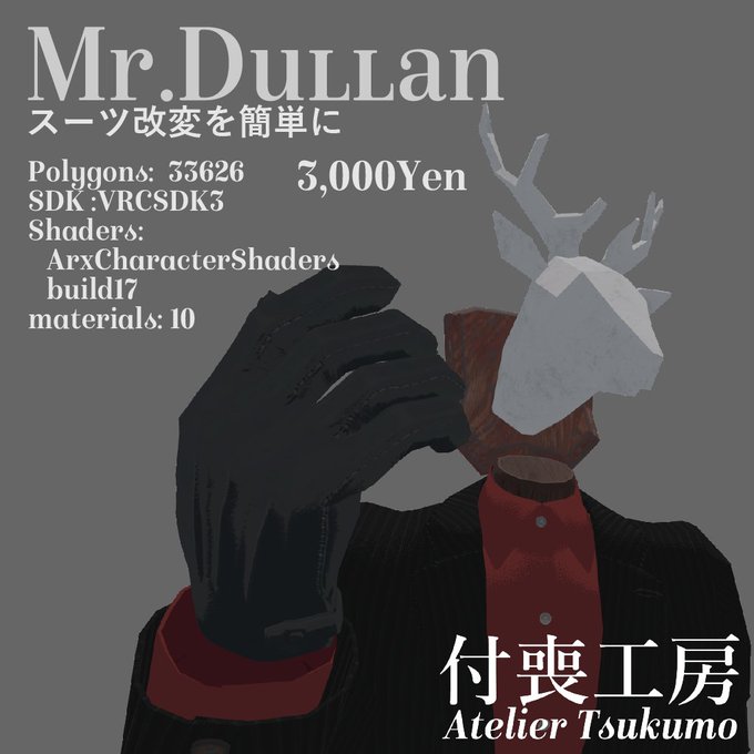 3Dアバター“Mr.Dullan” | 付喪工房 https://t.co/Nhyh77B6W7 #booth_pm