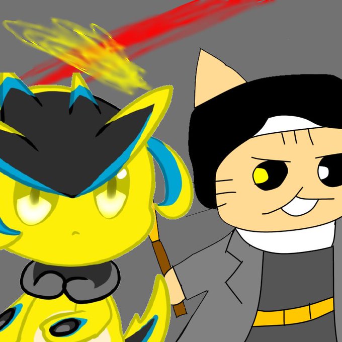 @RyushiRasto33 (リュウシさん)と合作しました!左と右の土方歳三と白ウサギなめこ、背景は僕 ボルト(赤、黄色)はリュウシさんです!ありがとうございました!