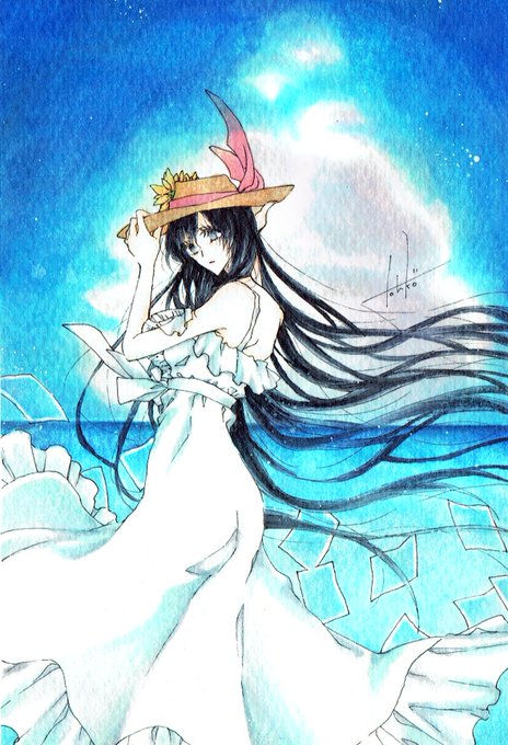 過去絵ですがホワイト加筆して改めてスキャン……夏×白ワンピ大好きなので今年も描きたいな。