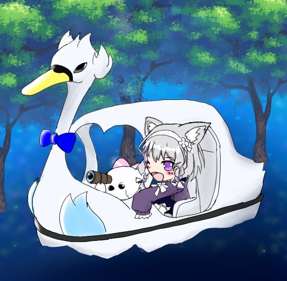 今日は白鳥の日!ということで うすわんボート あとおまけで猫の日にちなんで猫耳すうちゃぬも #うすわーと