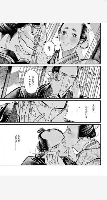 兄ぃの紋々、耳飾り、お百が兄ぃの頭を優しく撫でてる所等、読み終わった後は胸にくるものばかりだけど、一番尊いと感じた所は、お百の足首にある『紐』よね…!