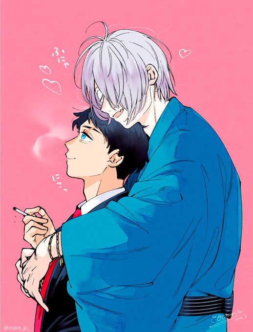 5月のサークルカット用に描いたイラストの差分です。橙背景からピンク背景にストーリーが繋がってる感じで見て頂ければと思います。父水の体格差、描いててほんと楽しいです。