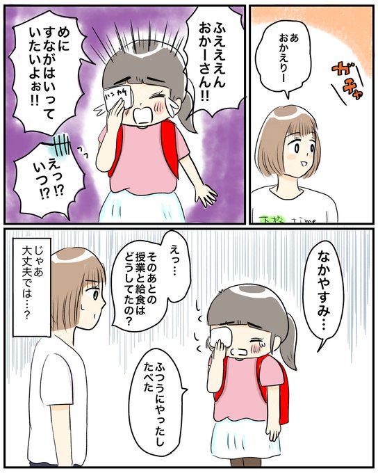 学校でイヤなことでもあったのかと思ったけど、本当に砂が目に入っただけだったみたい。