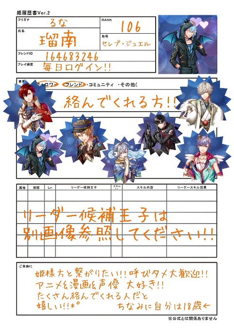 訂正!!姫履歴書更新しました!!