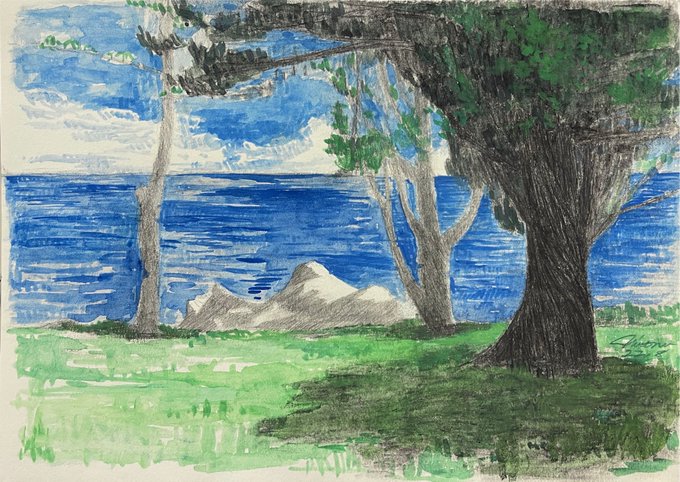 本州最南端、和歌山県は串本の情景です。この夏は後悔のないよう合計F4サイズ5枚同時描き上げ中