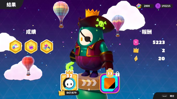フォールガイズ。デイリー消化完了しました~。ラウンド2到達×5の最後は六角マラソンで〆ました😊