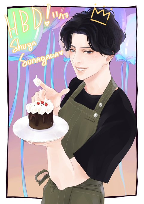 砂川さんお誕生日おめでとうございます🥳🎂🎉遅いけど描きたい。先月クックパッドでスイーツ男子可愛い!ケーキを作っていなかったけど見たい、またスイーツ男子を見たいんだ🖤沖縄風のケーキがあるかな…プロランタンを貰うのを楽しみにしています