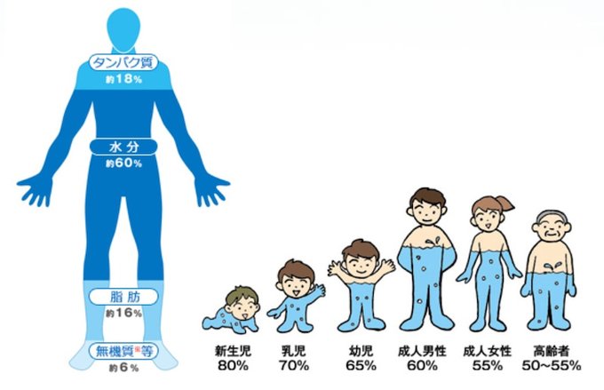 #砂糖水をやめる 成人の1日に必要最低限な水の量は 体重1㎏につき35mL 70㎏の方なら約2.5L これを コ〇・コーラでとった場合 1125kcal アク〇リアスでとった場合 475kcal 水・お茶でとった場合 0kcal ヒトは55-60%が水でできている #ダイエット は 飲み物からはじめよう