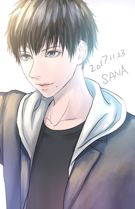 描いた! 1年D組 さな太郎くん 髪:漆黒で短髪ストレート 目:黒で切れ長 身長:167㎝ チャームポイント:艶ほくろ 部活:帰宅部 制服:ブレザー(紺色) 受け攻め:硬派受け