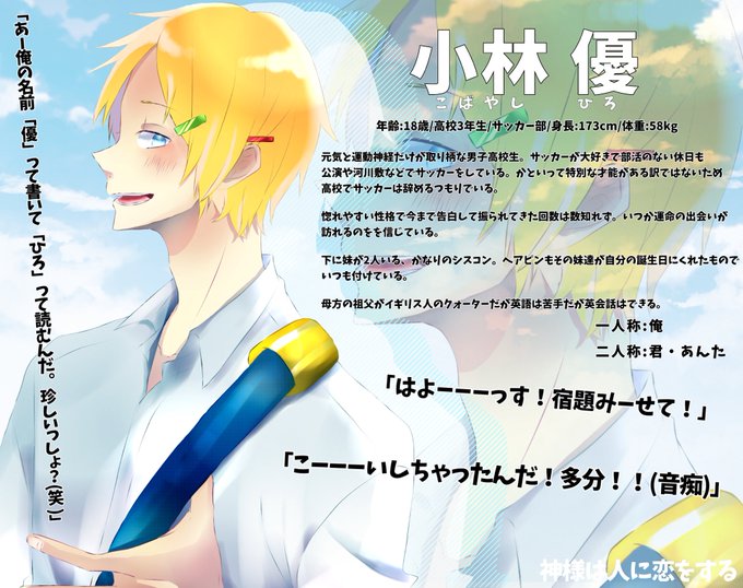 こちらの素敵企画様[ @kami_koi51 ]に参加失礼します。4枚目読みにくくてごめんなさい🙇質問ありましたらお気軽に!関係はゆるゆる募集しようかな、と!よろしくお願いします🙋✨✨