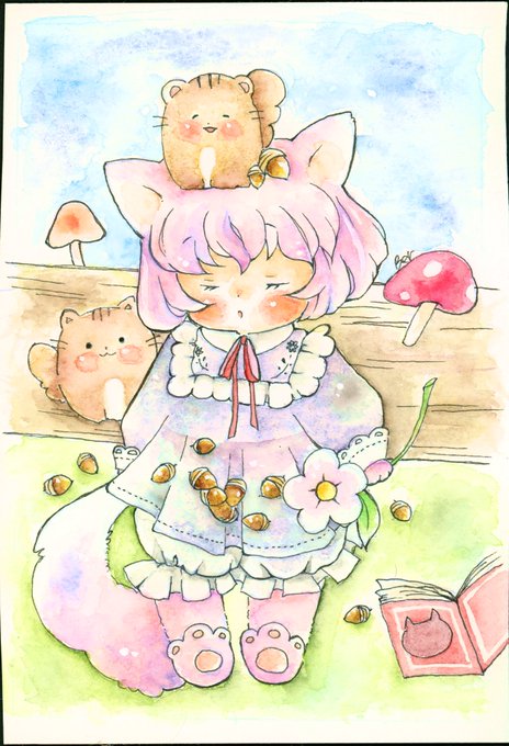 お赤飯さん(@osekihan888 )の優しい色鉛筆の色彩と可愛い女の子達の素敵な作品は全て売約済みとなりました🌸