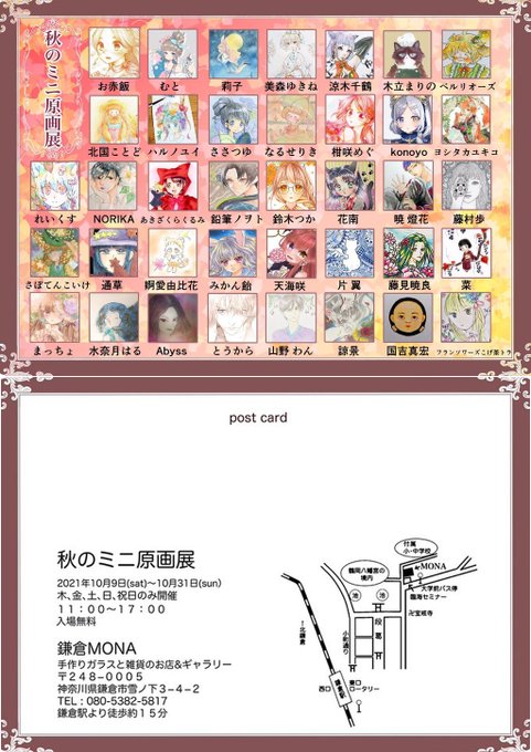 10月9日(土)〜10月31日(日)の木.金.土.日.祝日にて鎌倉MONAではイラストの展示会【秋のミニ原画展】を開催致します🤗