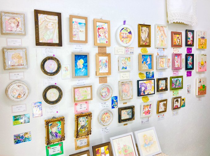 額装原画3点+ミニ原画2点+ポストカード等ありますのでご覧いただけると嬉しいです。後日通販対応もしていただけます